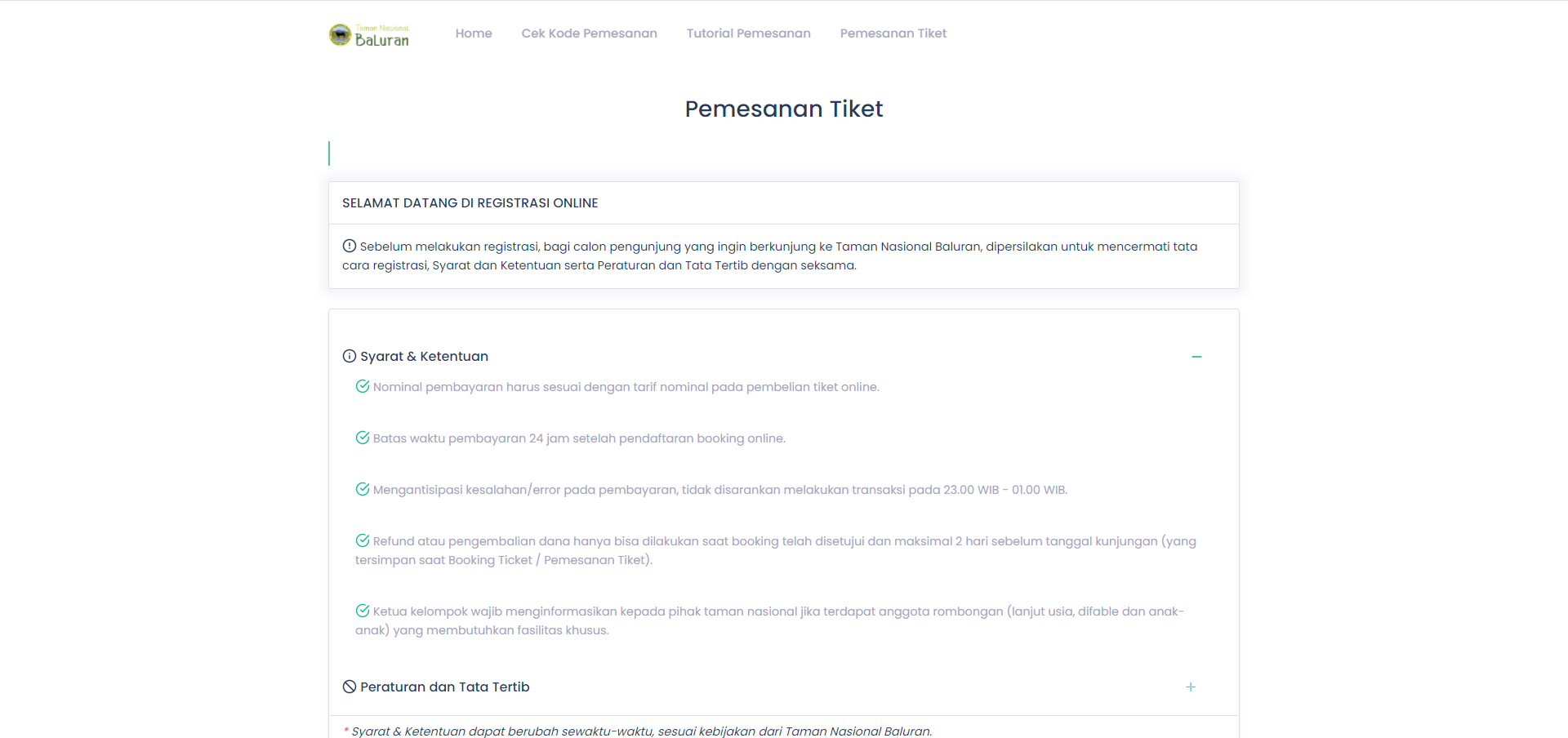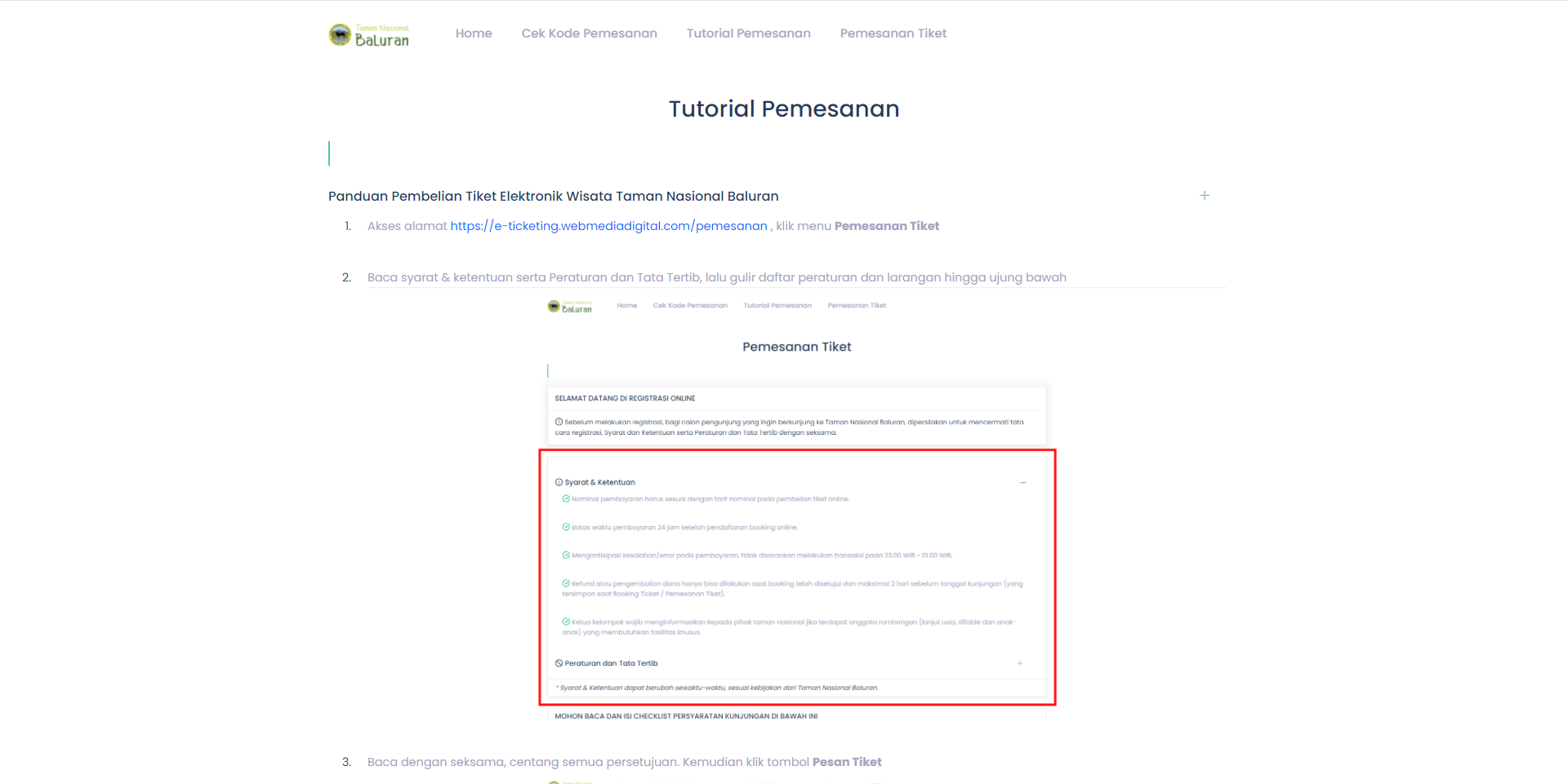 Aplikasi E-Ticketing Taman Nasional Baluran merupakan sebuah sistem pembelian tiket kunjungan ke Taman Nasional Baluran secara online.