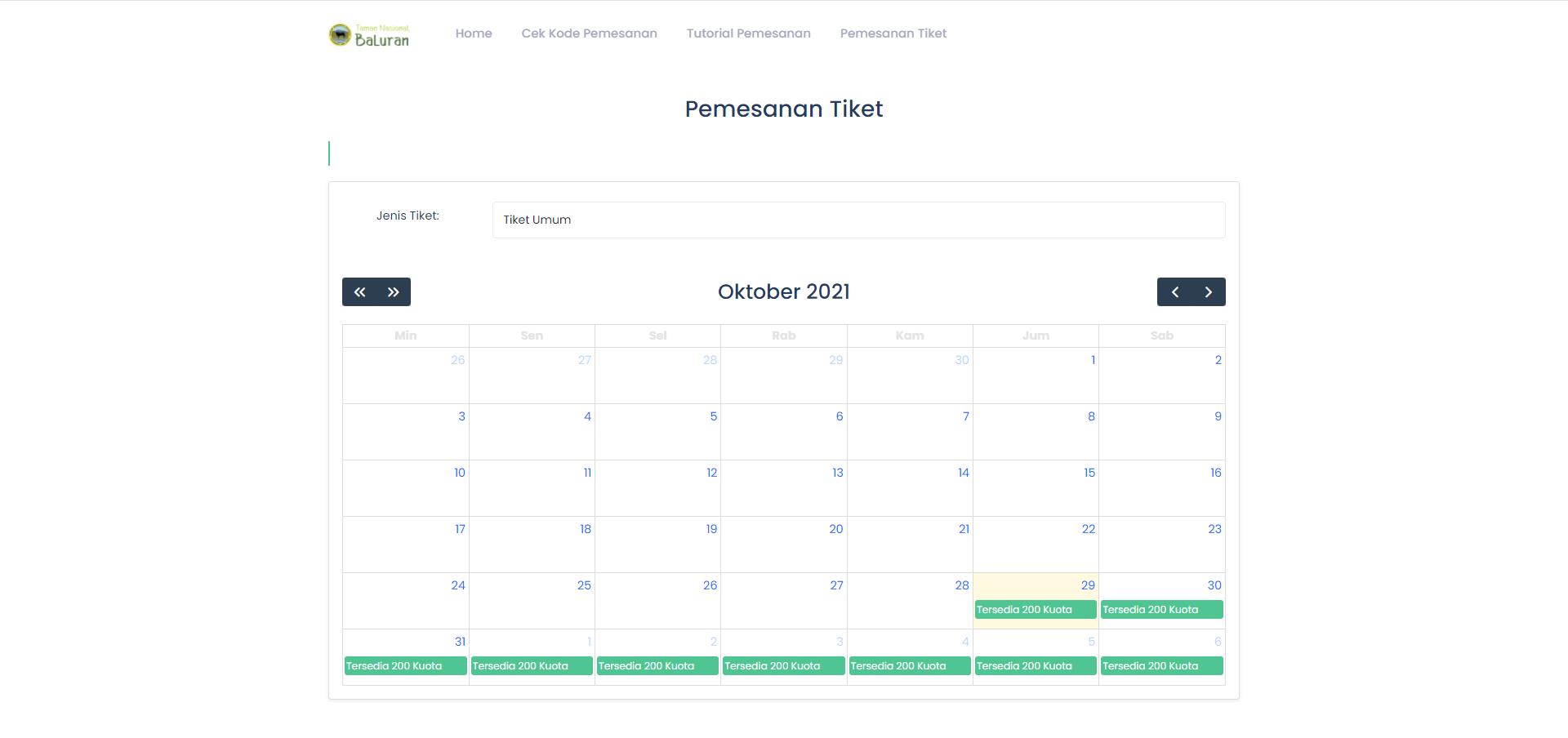 Dari permasalahan tersebut maka dibuatlah sistem E-Ticketing (Tiket Elektronik) Taman Nasional Baluran. Aplikasi tersebut berguna untuk mengurangi antrian pembelian tiket dan mempermudah untuk memanajemen pengunjung, kuota kunjungan, penjualan tiket, pelaporan dan monitoring pengunjung.