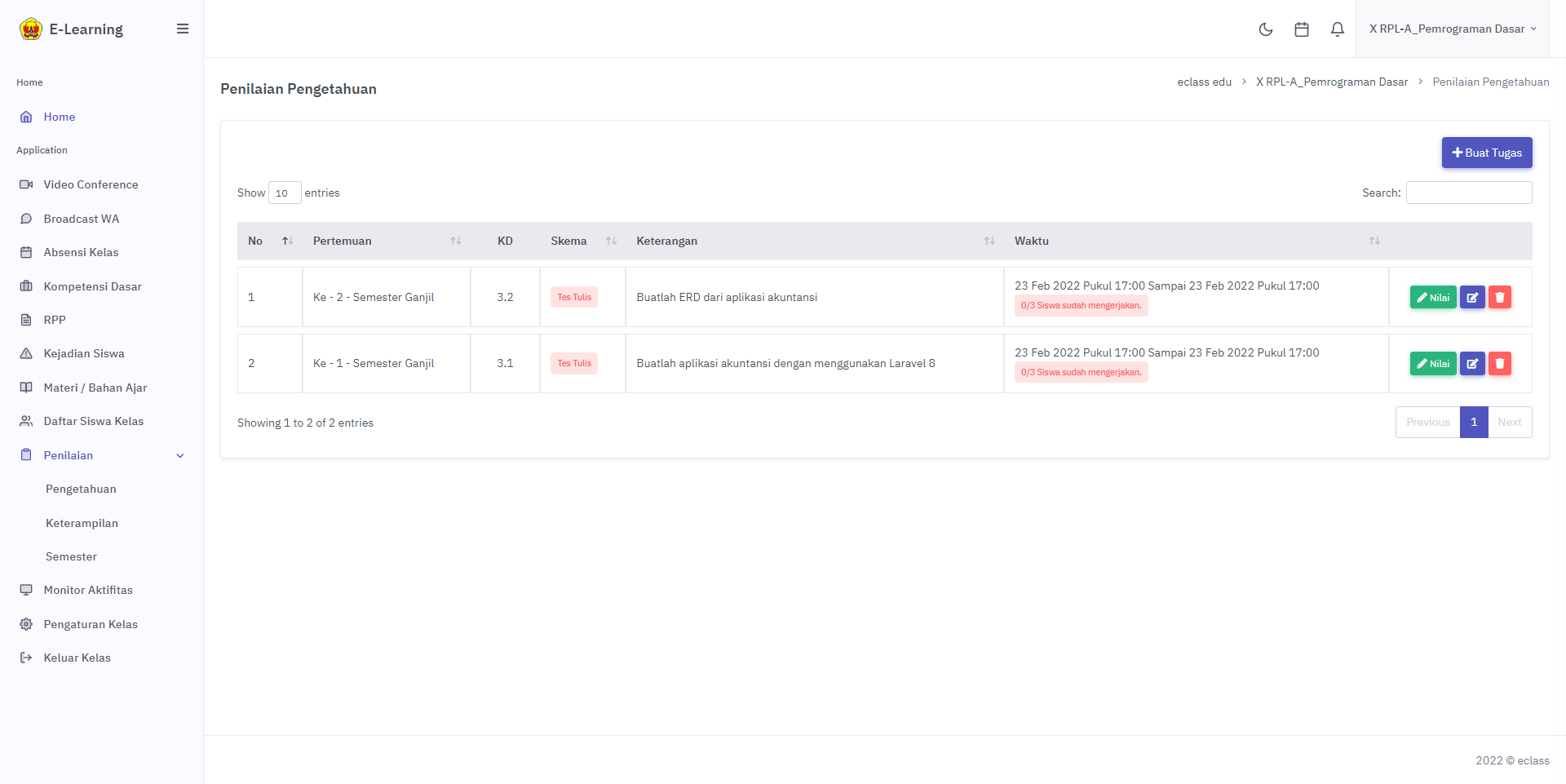 Learning Management System (LMS) atau biasa di sebut dengan E-Learning merupakan aplikasi yang digunakan untuk pembelajaran siswa secara daring atau online. Aplikasi E-Learning ini dilengkapi dengan berbagai fitur yang tentunya dapat mempermudah proses belajar mengajar.